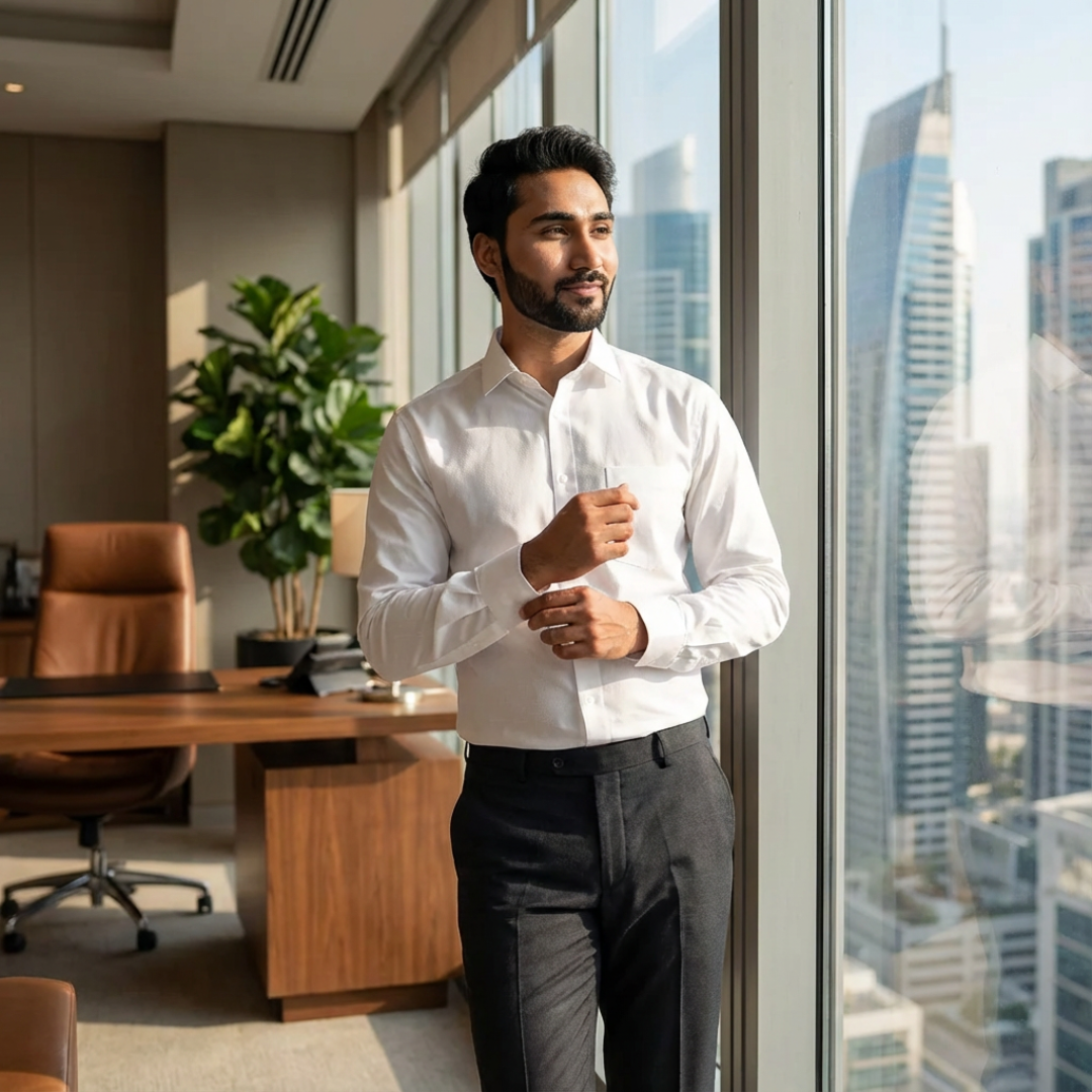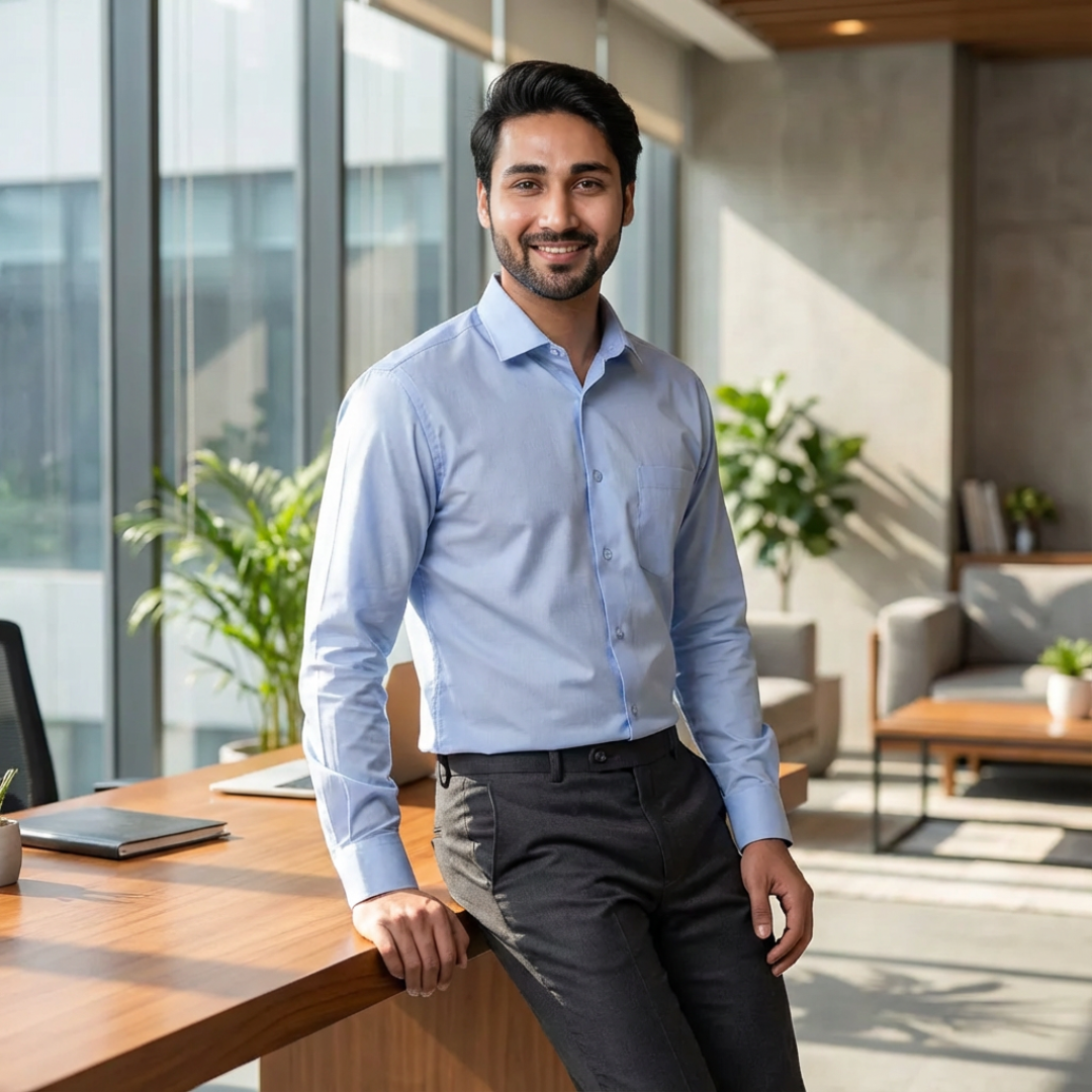 The Sky Blue micro checks shirt is light and comfortable. Looks neat for office and doesn’t feel heavy after long hours.